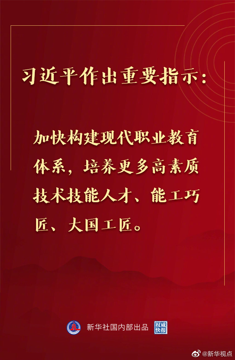 習(xí)近平總書(shū)記近日對(duì)職業(yè)教育工作作出重要指示強(qiáng)調(diào),在全面建設(shè)社會(huì)主義現(xiàn)代化國(guó)家新征程中,職業(yè)教育前途廣闊、大有可為。要堅(jiān)持黨的領(lǐng)導(dǎo),堅(jiān)持正確辦學(xué)方向,堅(jiān)持立德樹(shù)人,優(yōu)化職業(yè)教育類(lèi)型定位,深化產(chǎn)教融合、校企合作,深入推進(jìn)育人方式、辦學(xué)模式、管理體制、保障機(jī)制改革,穩(wěn)步發(fā)展職業(yè)本科教育,建設(shè)一批高水平職業(yè)院校和專(zhuān)業(yè),推動(dòng)職普融通,增強(qiáng)職業(yè)教育適應(yīng)性,加快構(gòu)建現(xiàn)代職業(yè)教育體系,培養(yǎng)更多高素質(zhì)技術(shù)技能人才、能工巧匠、大國(guó)工匠。各級(jí)黨委和政府要加大制度創(chuàng)新、政策供給、投入力度,弘揚(yáng)工匠精神,提高技術(shù)技能人才社會(huì)地位,為全面建設(shè)社會(huì)主義現(xiàn)代化國(guó)家、實(shí)現(xiàn)中華民族偉大復(fù)興的中國(guó)夢(mèng)提供有力人才和技能支撐。