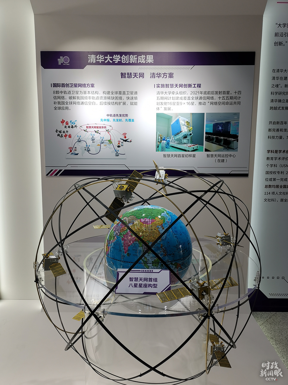 △智慧天網(wǎng)首組八星星座構(gòu)型,以8顆中軌道衛(wèi)星為基本結(jié)構(gòu),構(gòu)建全球覆蓋衛(wèi)星通信網(wǎng)絡(luò),破解我國(guó)頻率軌道資源稀缺困境。(總臺(tái)央視記者魏建拍攝)