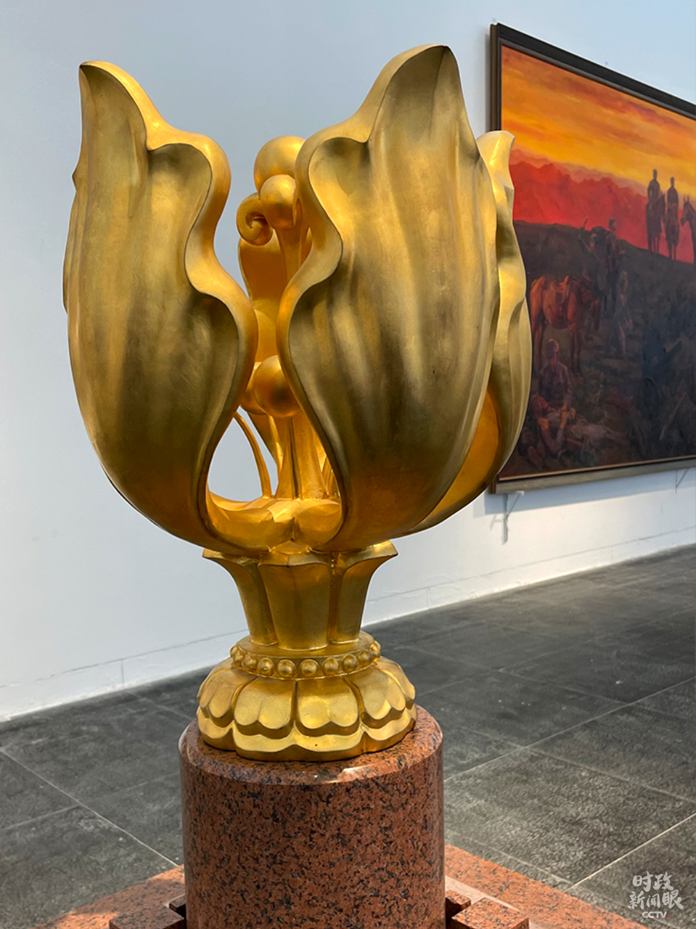 △在國(guó)徽的顏色選擇上,林徽因、梁思成主張莊嚴(yán)富麗,僅以金、紅二色表現(xiàn)。(總臺(tái)央視記者石丞拍攝)