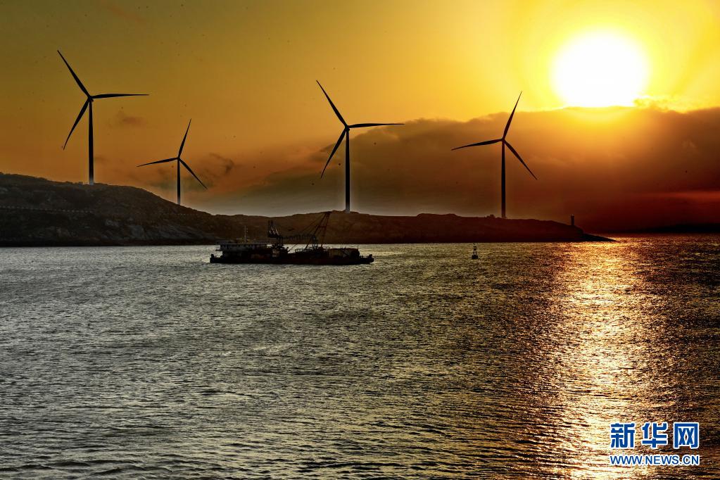 這是在福建南日島海域拍攝的風(fēng)力發(fā)電場(chǎng)(2019年2月22日攝)。新華社記者 張國俊 攝