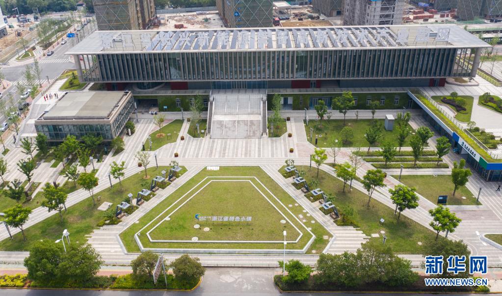 空中俯瞰浙江省長(zhǎng)興縣畫溪街道新能源小鎮(zhèn)“城市客廳”(2020年5月21日攝,無人機(jī)照片)。新能源小鎮(zhèn)“城市客廳”采用分布式光伏建筑一體化發(fā)電系統(tǒng),年發(fā)電量達(dá)28萬千瓦時(shí),在滿足建筑主體自用的前提下,多余電量還可并入電網(wǎng),產(chǎn)生“綠色收益”。新華社記者 徐昱 攝