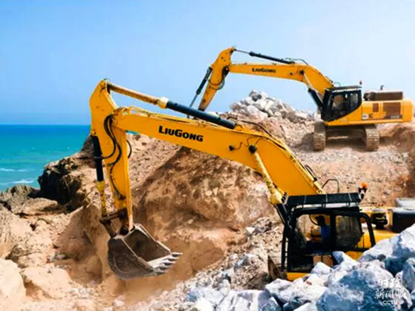 △2017年,摩洛哥首都拉巴特,大西洋海岸施工現(xiàn)場,柳工挖掘機(jī)進(jìn)行大塊石料的堆積作業(yè)。(資料圖)