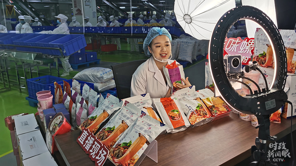 △袋裝螺螄粉直播帶貨現(xiàn)場(總臺(tái)央視記者許永松拍攝)