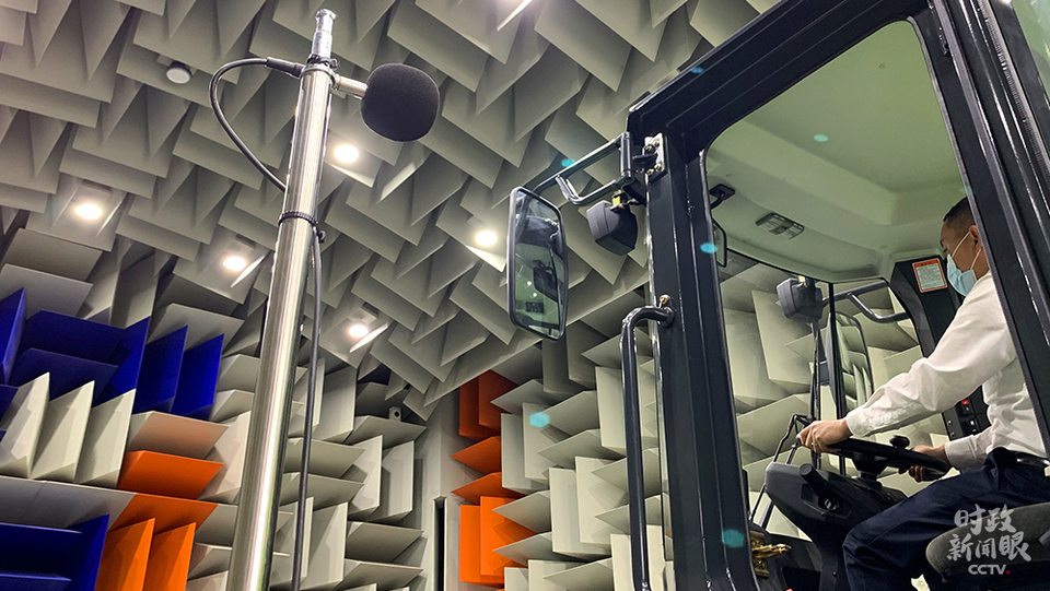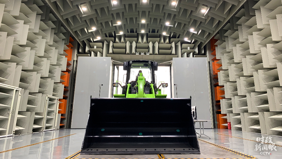 △研發(fā)中心的半消聲實(shí)驗(yàn)室正在為一款純電動(dòng)裝載機(jī)檢測噪聲數(shù)據(jù)。(總臺(tái)央視記者程鋮、張曉鵬拍攝)