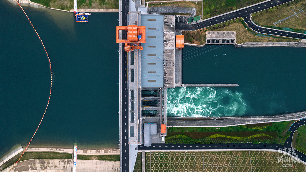 △俯瞰陶岔渠首樞紐工程(總臺(tái)央視記者段清臣拍攝)