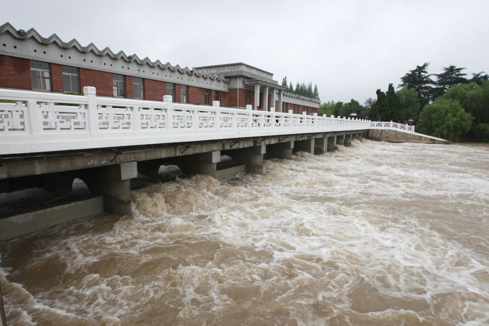 ↑2014年12月,南水北調(diào)中線一期工程正式通水。這是2014年12月27日,南水北調(diào)中線一期工程總干渠終點——北京團城湖明渠開閘放水,江水經(jīng)由明渠輸送到北京多個水廠。