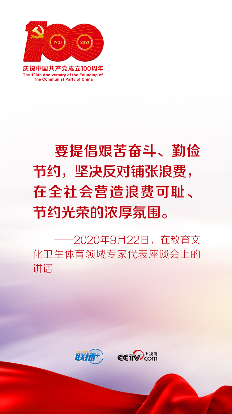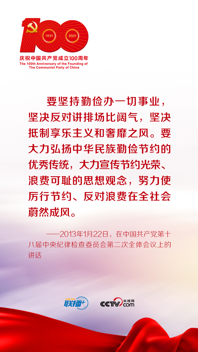 聯(lián)播+“節(jié)儉樸素,力戒奢靡,是我們黨的傳家寶?,F(xiàn)在,我們生活條件好了,但艱苦奮斗的精神一點都不能少,必須堅持以儉修身、以儉興業(yè),堅持厲行節(jié)約、勤儉辦一切事情。”