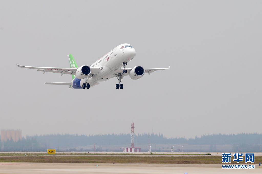2017年5月5日,國產大型客機C919在上海浦東國際機場首飛成功。新華社記者 丁汀 攝