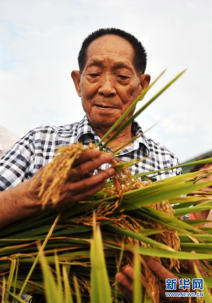 2013年8月19日,袁隆平院士在廣西桂林市灌陽縣黃關鎮(zhèn)聯(lián)德村袁隆平超級稻第四期攻關示范片查看水稻生長情況。新華社記者 陸波岸 攝
