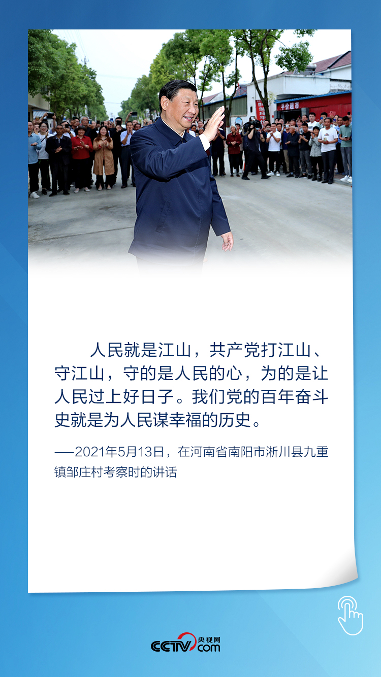 5月南陽之行,總書記馬不停蹄,了解中醫(yī)藥傳承創(chuàng)新、關(guān)心夏糧生產(chǎn)、考察南水北調(diào)移民村產(chǎn)業(yè)發(fā)展、主持召開推進(jìn)南水北調(diào)后續(xù)工程高質(zhì)量發(fā)展座談會,根本目的是為了讓人民過上更好的日子。“我們黨的百年奮斗史就是為人民謀幸福的歷史”,在建黨百年這個特殊年份,總書記如此高頻次到地方考察,用實際行動詮釋著黨的初心和使命。