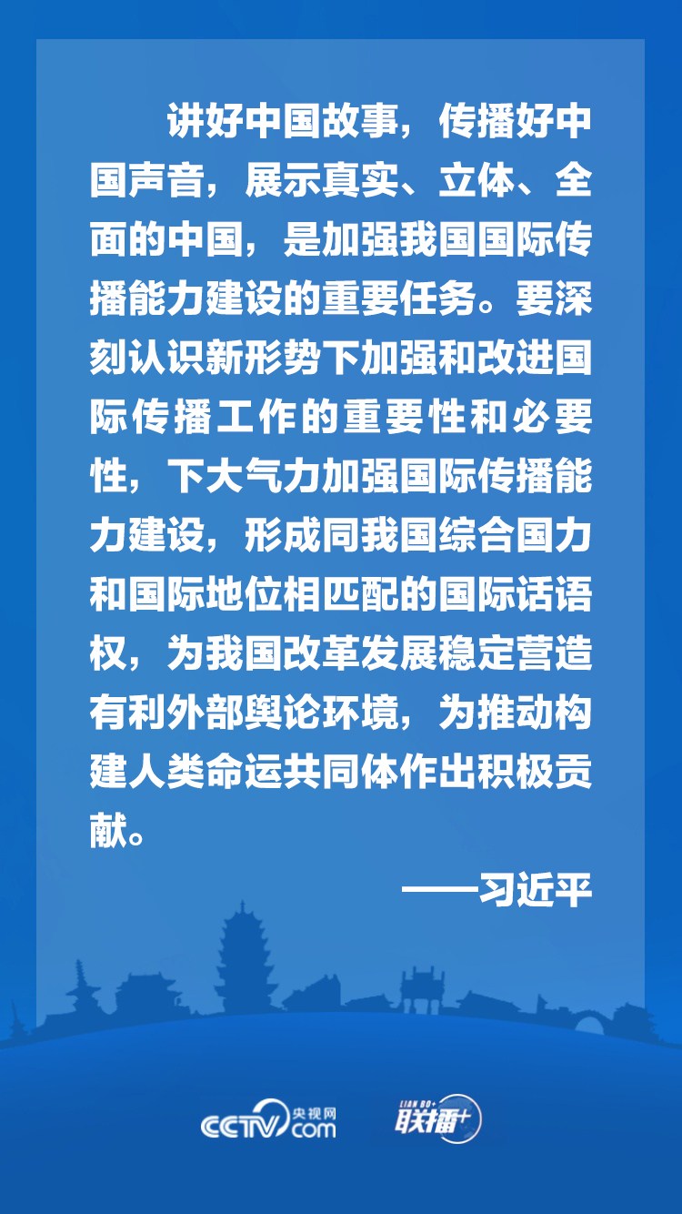 黨的十八大以來,我國大力推動國際傳播守正創(chuàng)新,理順內(nèi)宣外宣體制,打造具有國際影響力的媒體集群,積極推動中華文化走出去,有效開展國際輿論引導(dǎo)和輿論斗爭,初步構(gòu)建起多主體、立體式的大外宣格局,國際話語權(quán)和影響力顯著提升。面對新的形勢和任務(wù),應(yīng)如何加強我國國際傳播能力建設(shè)?央視網(wǎng)《聯(lián)播+》特梳理總書記講話要點,與您一起學(xué)習(xí)領(lǐng)悟。