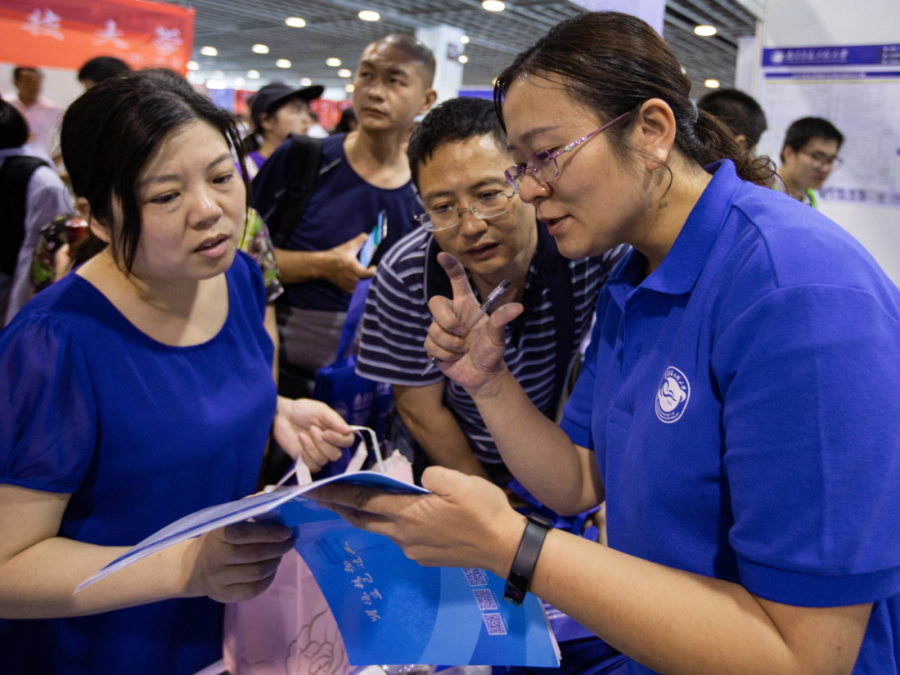 ▲考生家長在咨詢會上了解高校招生信息。新華社照片