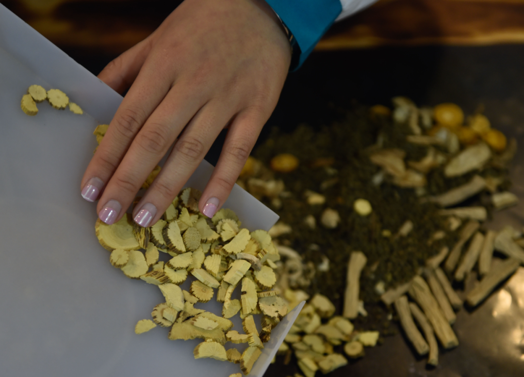 ▲圖為中醫(yī)藥專業(yè)的學生在調配中藥。新華社照片
