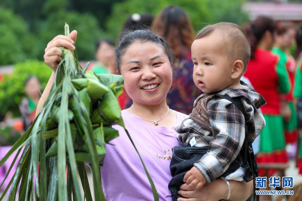 6月2日,貴州省銅仁市玉屏侗族自治縣亞魚鄉(xiāng)郭家灣村村民參加包粽子比賽。新華社發(fā)(胡攀學攝)