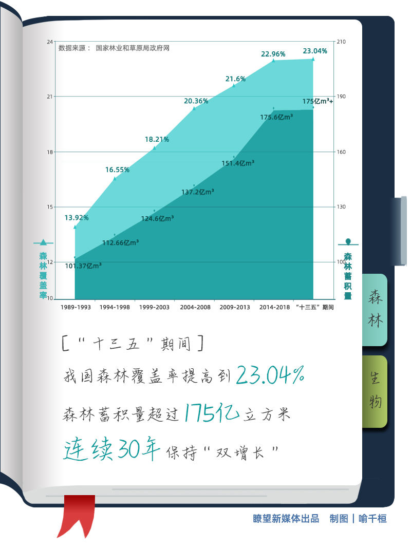 三北防護(hù)林、天然林保護(hù)、退耕還林還草等一系列重大生態(tài)工程深入推進(jìn)。“十三五”期間,我國(guó)森林覆蓋率提高到23.04%,森林蓄積量超過175億立方米,連續(xù)30年保持“雙增長(zhǎng)”,成為森林資源增長(zhǎng)最多的國(guó)家。