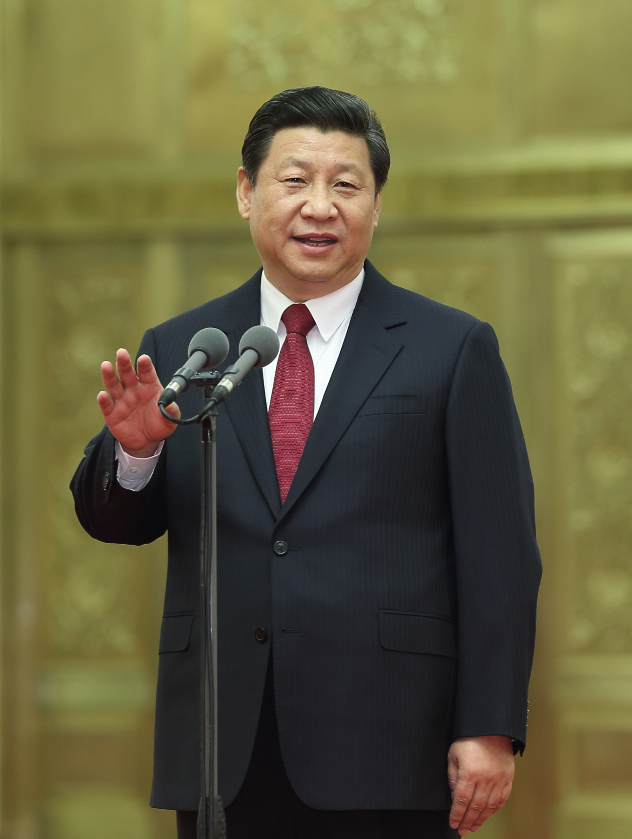 ↑2014年1月6日,習(xí)近平在北京人民大會堂會見探月工程嫦娥三號任務(wù)參研參試人員代表。