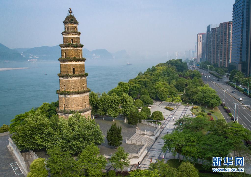 湖北省宜昌市江灘公園一角(2018年4月30日攝,無人機(jī)照片)。新華社記者 肖藝九 攝