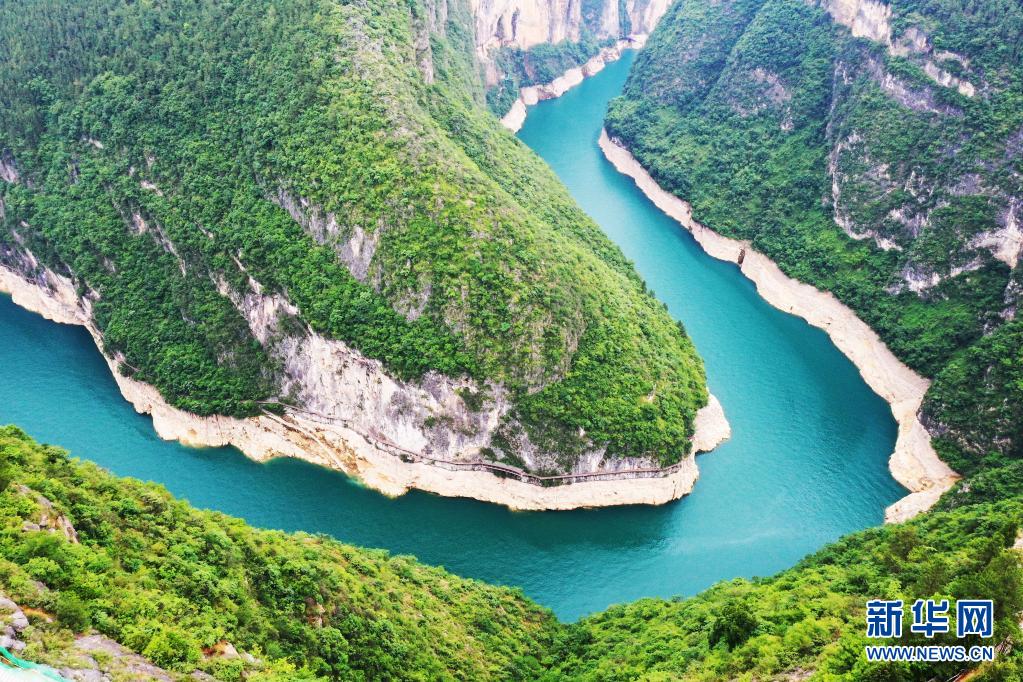 重慶市巫山縣魚頭灣景象(2020年5月26日攝,無人機(jī)照片)。長江經(jīng)濟(jì)帶沿江11省市大力推進(jìn)生態(tài)環(huán)境整治,“共抓大保護(hù)、不搞大開發(fā)”,共同舞動(dòng)高質(zhì)量發(fā)展的“綠色長龍”。新華社記者 王全超 攝