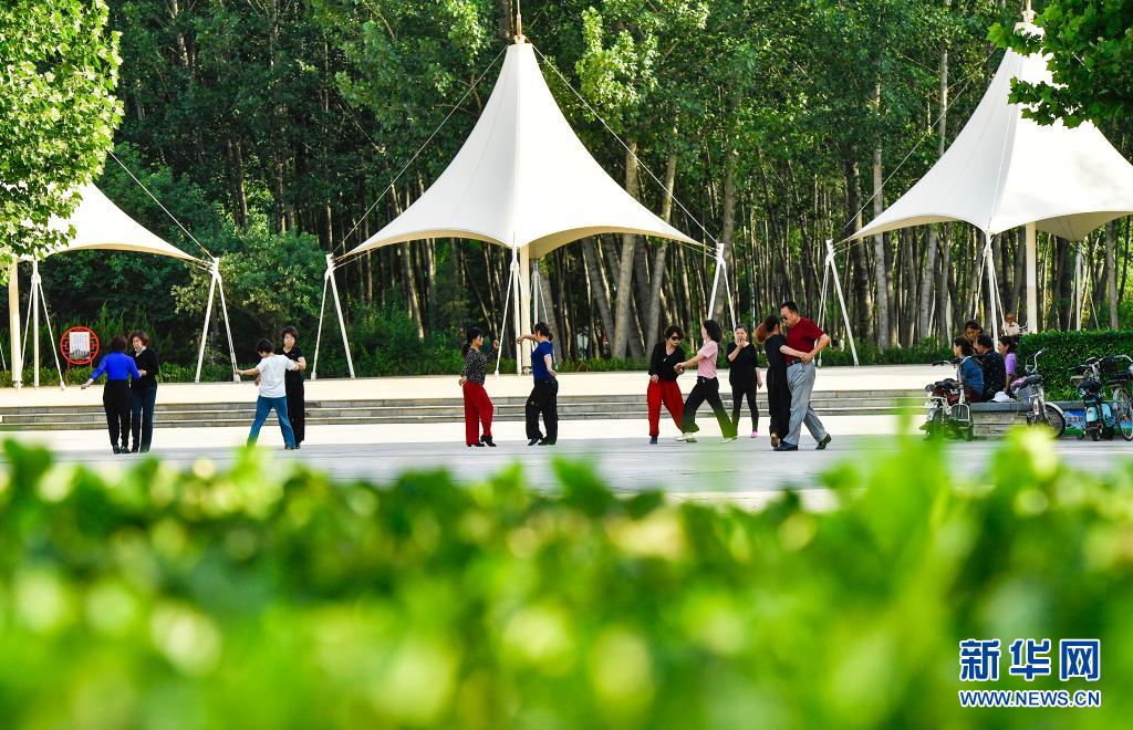 市民在河北省文安縣森林公園內(nèi)健身(2020年6月5日攝)。新華社記者 李曉果 攝