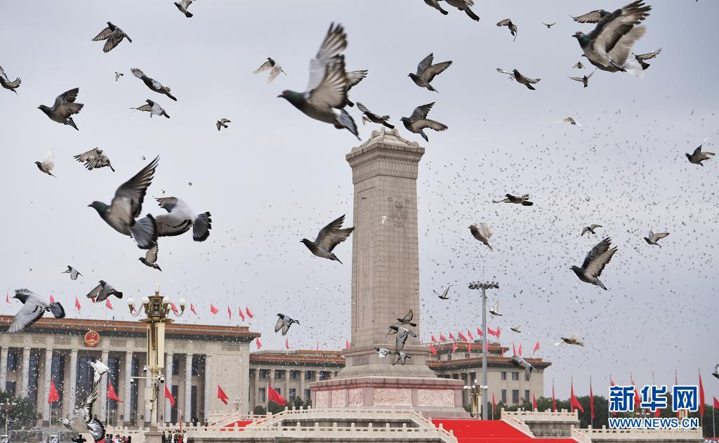 7月1日上午,慶祝中國共產(chǎn)黨成立100周年大會在北京天安門廣場隆重舉行。這是慶祝大會現(xiàn)場和平鴿展翅高飛。新華社記者 孫非 攝