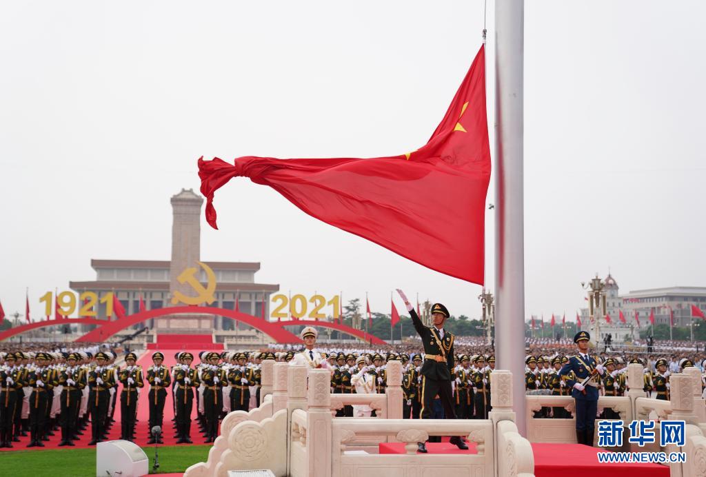 7月1日上午,慶祝中國共產(chǎn)黨成立100周年大會在北京天安門廣場隆重舉行。這是升國旗儀式。新華社記者 申宏 攝