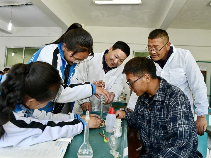 △西藏山南市第一高級中學(xué),學(xué)生們正在老師的指導(dǎo)下做化學(xué)實驗。