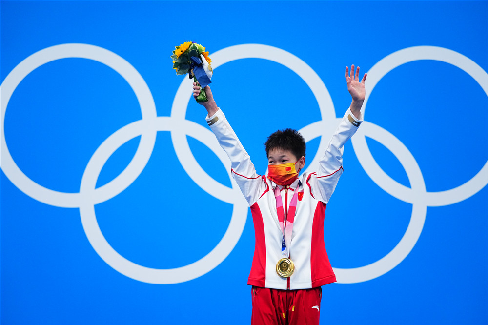 2021年8月5日,全紅嬋在頒獎(jiǎng)儀式上。當(dāng)日,在東京奧運(yùn)會(huì)跳水項(xiàng)目女子10米跳臺(tái)決賽中,中國(guó)選手全紅嬋奪得冠軍。新華社記者 許暢 攝