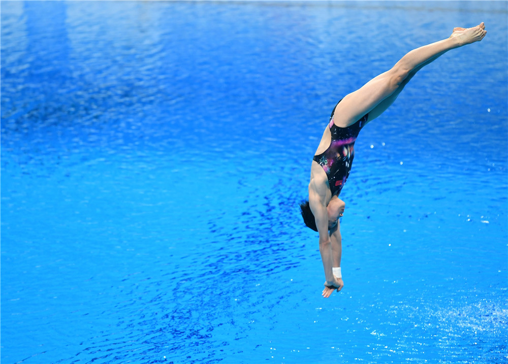跳板是鐵制的,夏天被曬得滾燙,她只能用毛巾擠水給跳板降溫,然后一次次迎著炫目的陽(yáng)光,一躍入水。