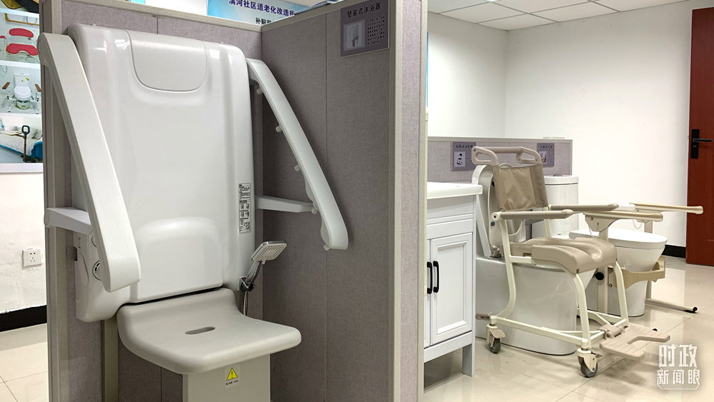 △濱河社區(qū)對部分家居用品進(jìn)行適老化改造,使之符合老年人的身體機能和行動特點。這是壁掛式沐浴器。(總臺央視記者程鋮拍攝)