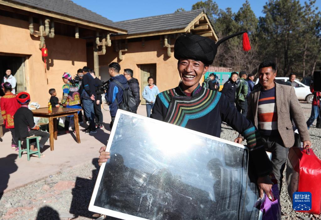 在四川省昭覺縣三河村的易地扶貧安置點,彝族群眾馬海日聰喜搬新居(2019年2月11日攝)。新華社記者 江宏景 攝