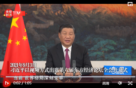 國家主席習近平9月3日應邀以視頻方式出席第六屆東方經濟論壇全會開幕式并致辭。