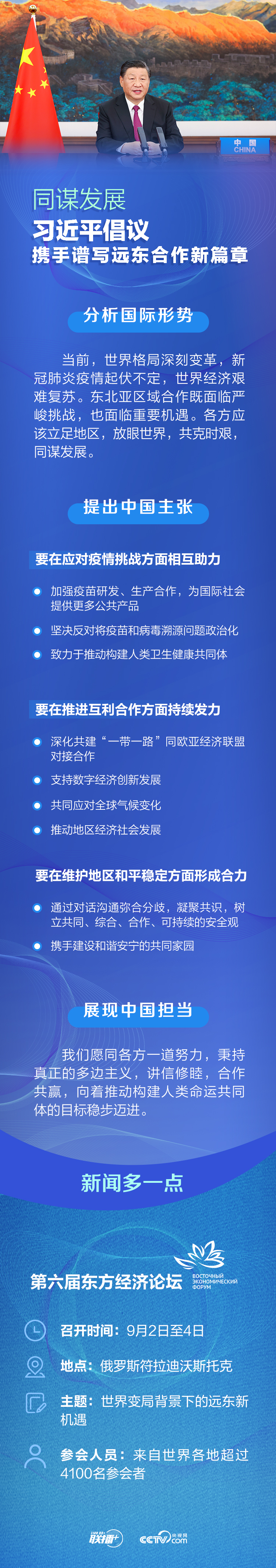 聯(lián)播+9月3日,習(xí)近平主席應(yīng)邀以視頻方式出席第六屆東方經(jīng)濟(jì)論壇全會(huì)開幕式并發(fā)表題為《共克時(shí)艱,同謀發(fā)展 攜手譜寫遠(yuǎn)東合作新篇章》的致辭。