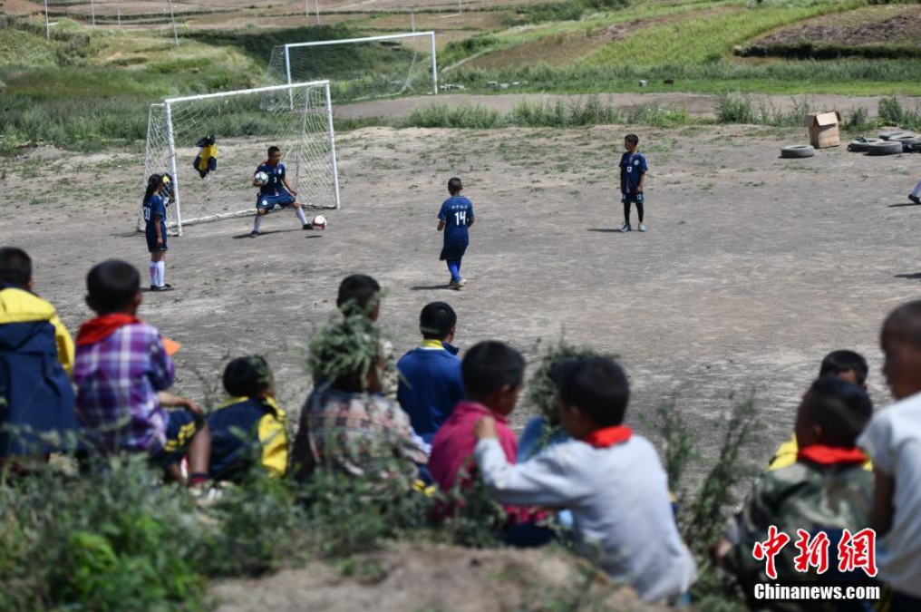 9月2日,四川省涼山彝族自治州昭覺縣瓦吾小學(xué)的彝族孩子們迎來了新學(xué)期開學(xué)后的第一節(jié)足球課。經(jīng)過漫長(zhǎng)的暑假,瓦吾小學(xué)兩位支教老師帶領(lǐng)孩子們通過負(fù)重、體能、比賽等訓(xùn)練,檢驗(yàn)孩子們的足球技能。瓦吾小學(xué)因其特殊的地理位置,被稱為“云端小學(xué)”,目前該學(xué)校255名學(xué)生中踢足球的就超過了80名,足球?yàn)楹⒆觽兗芷鹆艘蛔ㄏ蛏酵馐澜绲臉蛄?。圖為孩子們拿上足球準(zhǔn)備開始訓(xùn)練。張浪 攝