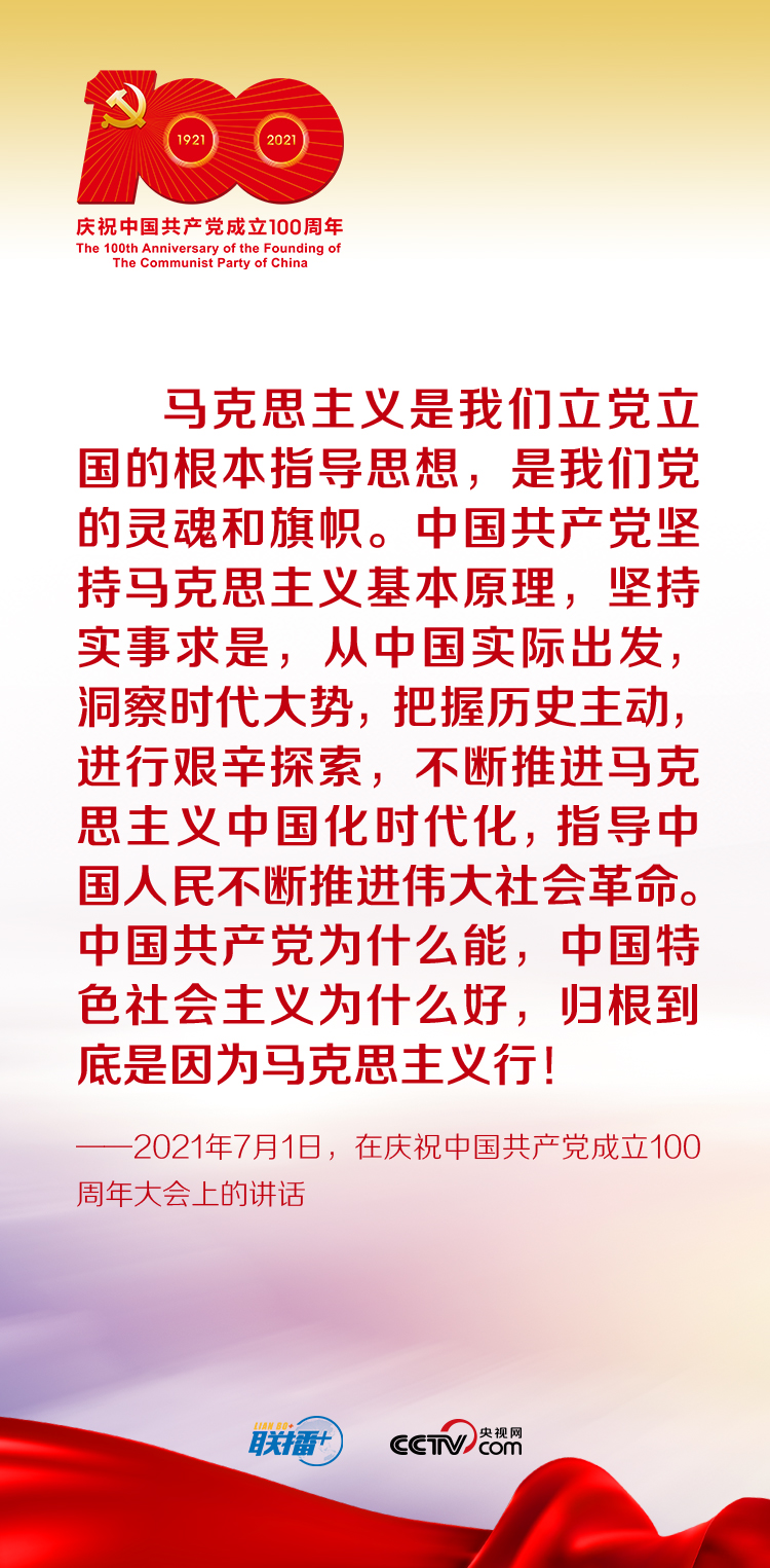 “馬克思主義是我們立黨立國的根本指導(dǎo)思想,是我們黨的靈魂和旗幟。”習(xí)近平總書記在慶祝中國共產(chǎn)黨成立100周年大會上指出,中國共產(chǎn)黨為什么能,中國特色社會主義為什么好,歸根到底是因為馬克思主義行!