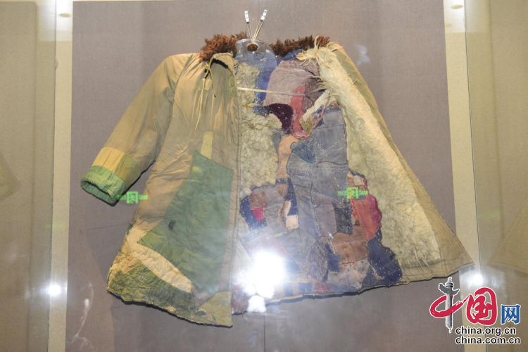“大家看,這是八師一二一團(tuán)第一代軍墾戰(zhàn)士王德明的軍大衣,這件軍大衣上面一共有著296塊補(bǔ)丁?,F(xiàn)如今,它既是國家一級(jí)革命文物,也是我們博物館的鎮(zhèn)館之寶。在當(dāng)年進(jìn)疆初期,軍墾戰(zhàn)士們?yōu)榱斯?jié)約資金用于新疆第一批工業(yè)建設(shè),將一年發(fā)一套的軍大衣改為兩年發(fā)一套、三年發(fā)一套,把已經(jīng)磨爛的軍裝縫縫補(bǔ)補(bǔ)了數(shù)次,展現(xiàn)出軍墾戰(zhàn)士們吃苦耐勞、無私無畏的奉獻(xiàn)精神。”在新疆兵團(tuán)軍墾博物館二樓展廳,講解員張楠指著一件里里外外補(bǔ)滿不同顏色補(bǔ)丁的軍大衣介紹道。