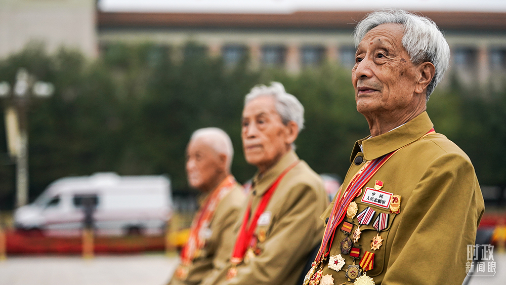 △87歲的抗美援朝志愿軍老戰(zhàn)士于志明在現(xiàn)場(chǎng)等待儀式開始。在2019年新中國成立70周年慶典上,于老曾是群眾游行“致敬”方陣的一員。(總臺(tái)國廣記者李晉拍攝)