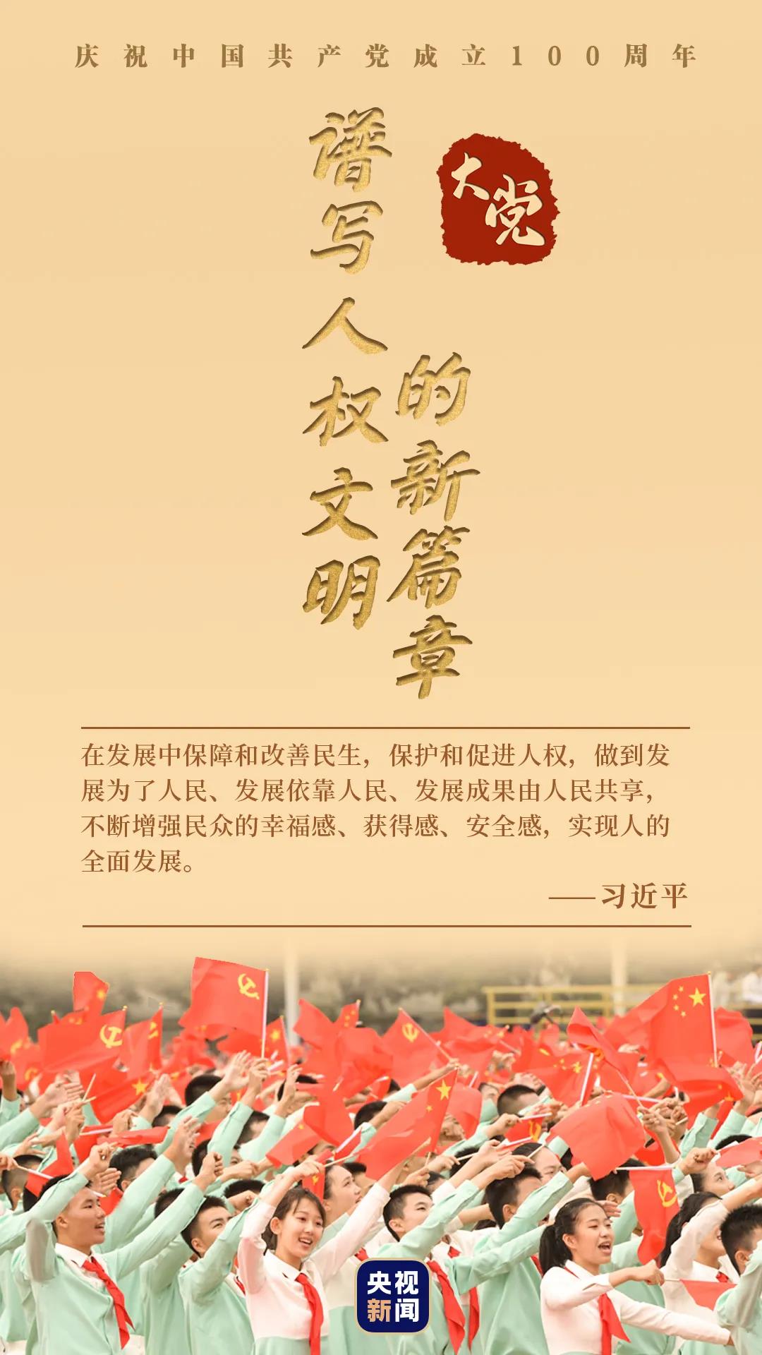 中國共產(chǎn)黨的100年,是爭取人權(quán)、尊重人權(quán)、保障人權(quán)、發(fā)展人權(quán)的100年。堅(jiān)持人民至上,中國共產(chǎn)黨帶領(lǐng)中國成功走出了一條中國特色社會主義人權(quán)發(fā)展道路,創(chuàng)造了尊重和保障人權(quán)的偉大奇跡,譜寫了人權(quán)文明的新篇章。