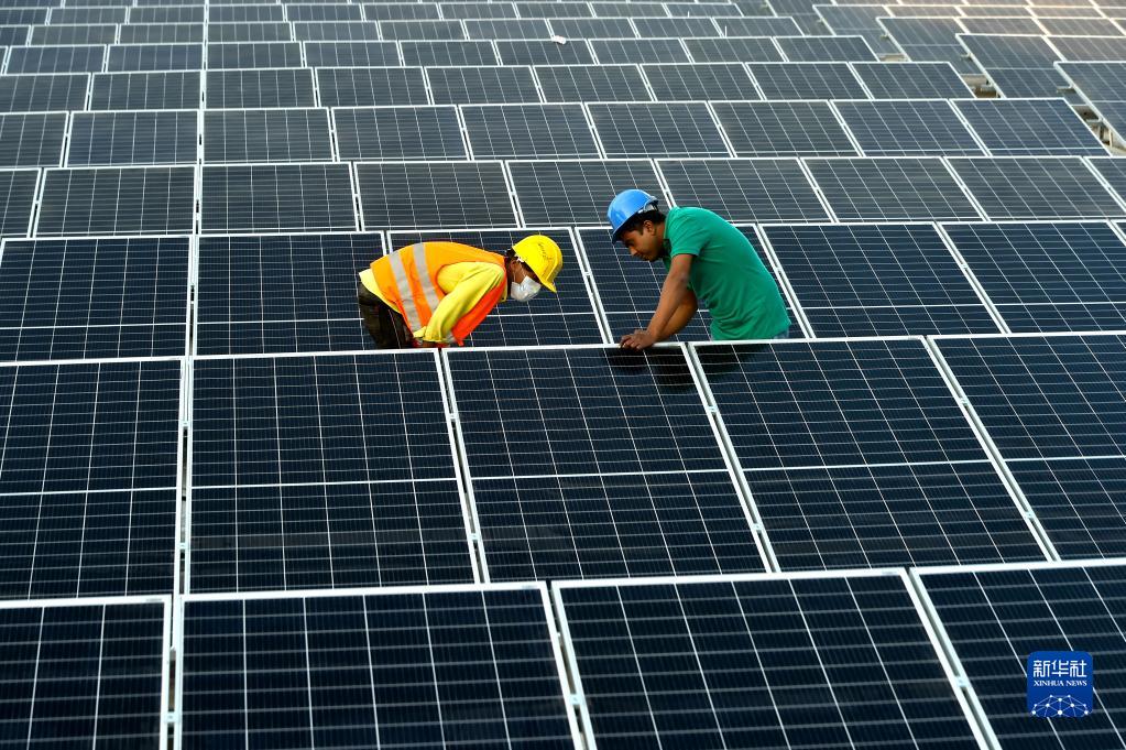 2021年1月3日,在位于孟加拉國(guó)首都達(dá)卡郊區(qū)的利德成集團(tuán)廠區(qū),工人們?cè)诜宽斀M裝光伏模組。從2020年開始,中資制衣類企業(yè)——利德成集團(tuán)在其位于孟加拉國(guó)達(dá)卡的廠區(qū)內(nèi)建設(shè)光伏電站,以降低對(duì)傳統(tǒng)能源的依賴,減少碳排放,從綠色發(fā)展的角度助力“一帶一路”建設(shè)。新華社發(fā)