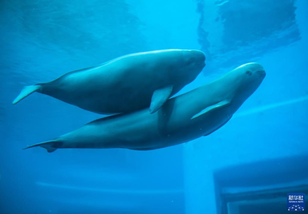 2021年7月5日,在位于武漢的中國科學(xué)院水生生物研究所,長江江豚媽媽和小江豚在水中游動(dòng)。新華社記者 肖藝九 攝