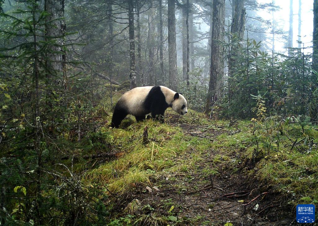 這是大熊貓國家公園甘肅白水江片區(qū)的紅外相機(jī)拍攝到的野生大熊貓活動(dòng)畫面(資料圖片)。新華社發(fā)(甘肅白水江國家級自然保護(hù)區(qū)管理局供圖)