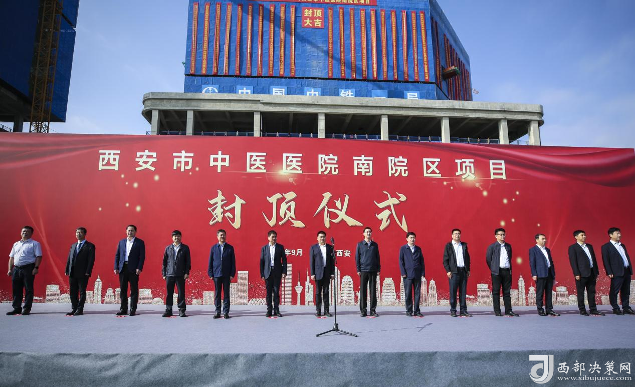 來自西安市政府,陜西省中醫(yī)藥管理局,市相關(guān)部門、長安區(qū)委區(qū)政府有關(guān)負(fù)責(zé)同志,以及市中醫(yī)醫(yī)院、中鐵一局建安公司等建設(shè)、施工單位人員100余人參加了封頂儀式。