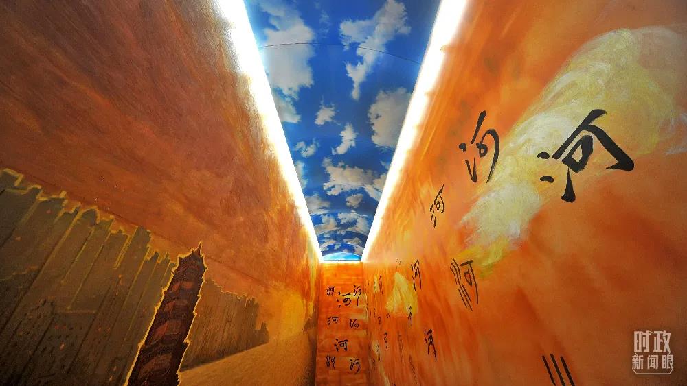 △黃河博物館廊道展示了不同時代“河”字的多種寫法。(圖/視覺中國)