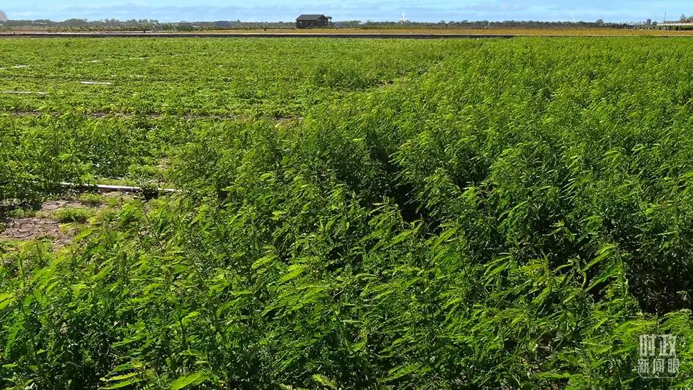 △黃河三角洲農高區(qū)。田菁是耐鹽堿綠肥作物,能夠促進鹽堿地用養(yǎng)結合。(總臺記者韓森拍攝)