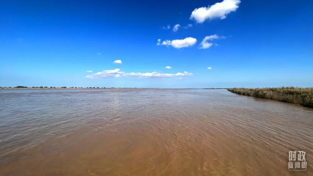 △山東東營,泛黃之水奔涌入海。(總臺央視記者王鵬飛拍攝)