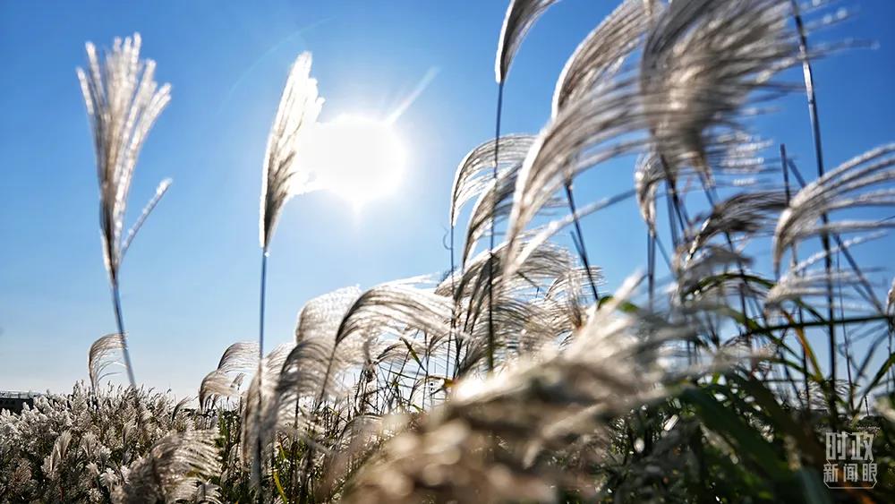 △黃河口濕地,成片蘆花隨風擺動。(總臺央視記者程鋮拍攝)