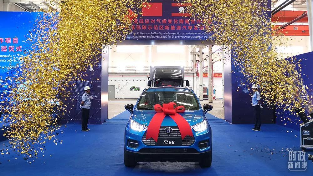 △2021年7月,中國老撾南南合作項目——萬象賽色塔低碳示范區(qū)新能源車發(fā)運儀式在長沙舉行。28輛新能源汽車將助力當?shù)匕l(fā)展綠色交通。(圖/視覺中國)