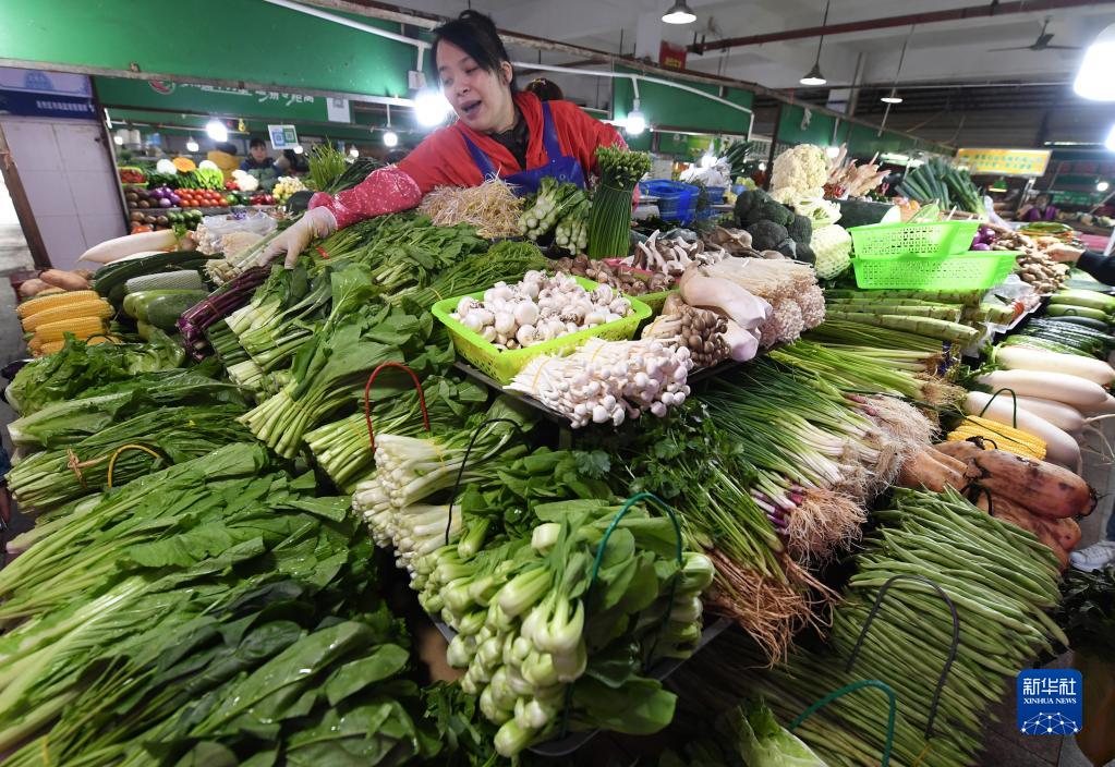 11月10日,在廣西南寧市濱湖路一家農(nóng)貿(mào)市場(chǎng),人們?cè)谶x購(gòu)蔬菜。新華社記者 陸波岸 攝