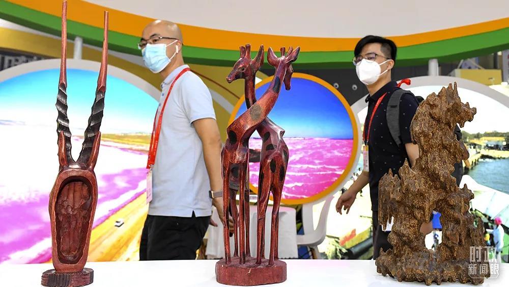 △2021年9月,湖南長沙,第二屆中非經(jīng)貿(mào)博覽會上展出的塞內(nèi)加爾工藝品。(圖/視覺中國)