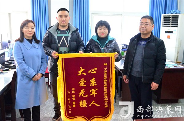 西部決策網(wǎng)訊“我能夠與家人團(tuán)圓,能夠照顧我的妻子和母親,能夠見(jiàn)到剛出生不久的孩子,給你們添了不少麻煩,真的太感謝你們了!”12月1日下午,在四川綿陽(yáng)某部隊(duì)服役回家探親、家住寧強(qiáng)縣漢源街道辦二道河社區(qū)的徐偉與他的妻子及姐姐一同來(lái)到縣疫情防控辦,將一面印有“心系軍人 大愛(ài)無(wú)疆”的錦旗送到工作人員的手中時(shí)激動(dòng)地說(shuō),“你們?cè)诎倜χ心転槲覀冎耄銈兪侨娜鉃槿嗣穹?wù)的好干部……我們制作了一面錦旗略表一下謝意,請(qǐng)收下!”