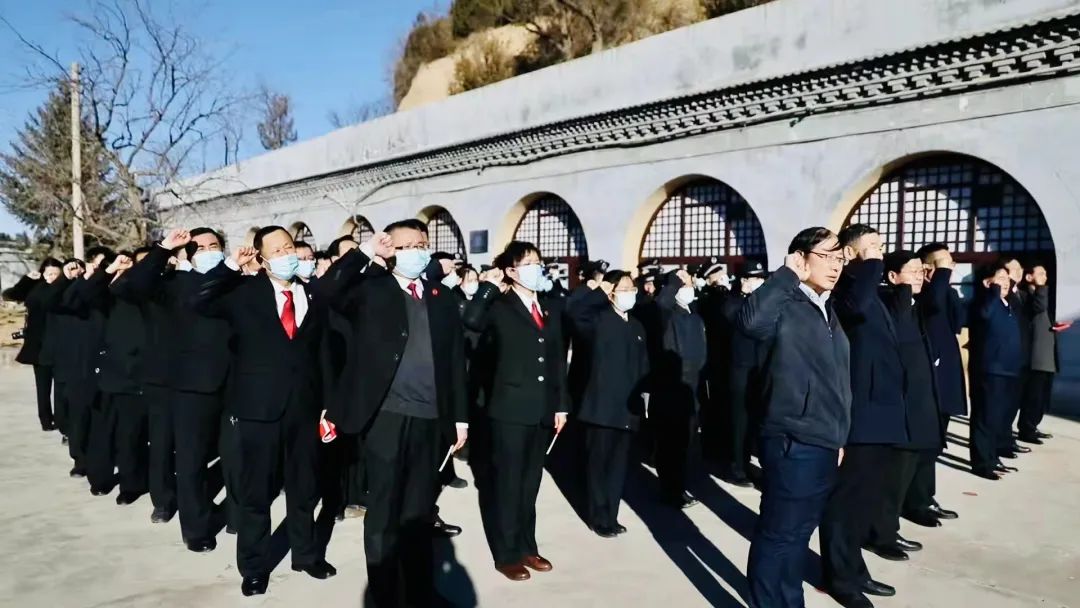 活動現(xiàn)場,延安市中級人民法院黨組書記、院長康天軍帶領全市法院、檢察院、公安、司法行政戒毒系統(tǒng)80余名政法干警進行了憲法宣誓?;顒友堦兾魇£兏蕦幐锩鶕?jù)地史研究會副會長郝鳳年進行“向歷史學習,為未來奮斗”專題現(xiàn)場授課。全體人員參觀了陜甘寧邊區(qū)高等法院舊址、陜甘寧邊區(qū)審判史陳列館。